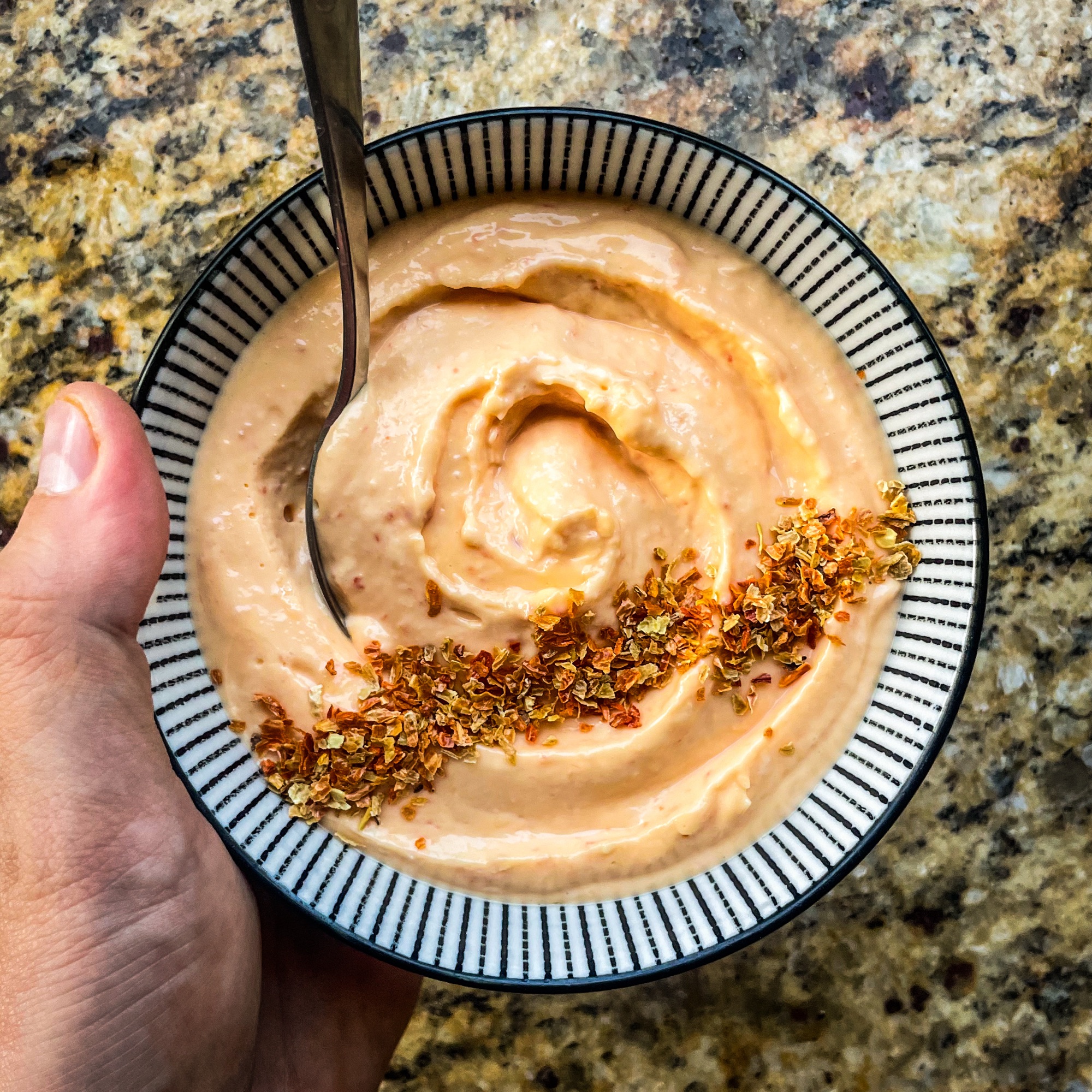 In meiner veganen Zeit habe ich das Rezept abgewandelt. Um eine Emulsion herzustellen braucht es einen Emulgator, das Lecithin. Dieses ist klassisch im Eigelb enthalten aber auch in Soja oder Senf. Über die Zeit habe ich verschiedene Aioli hergestellt, hier ist die feurig-scharfe Version, perfekt zum Grillen oder für Sandwiches.