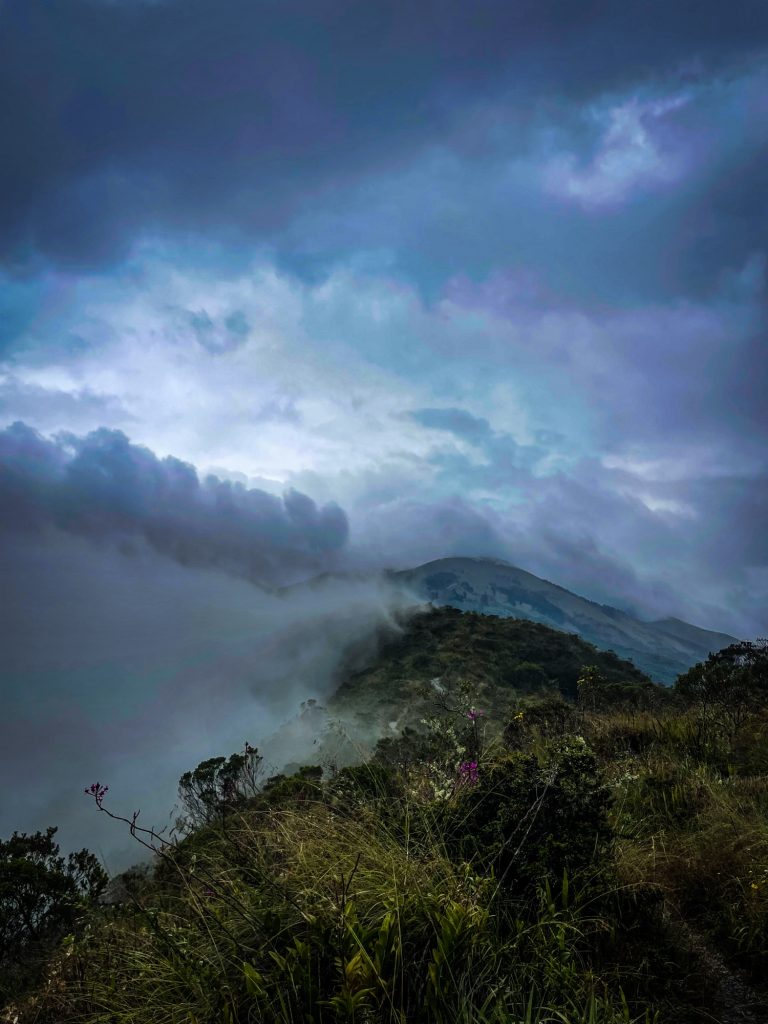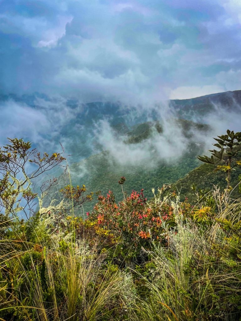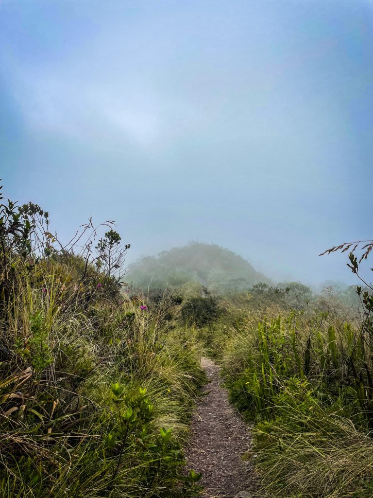 Wir gingen den befestigten Weg am Kamm entlang und genossen die magische Atmosphäre. Die Vegetation hatte sich zum ersten Mal geändert, dies wird sie über die ca. siebenstündige Strecke noch öfter tun. Nun bestand sie aus hohen Gräsern, bunten Orchideen-Arten und Lupinen. Die in Deutschland beliebte Hülsenfrucht wächst hier wild.