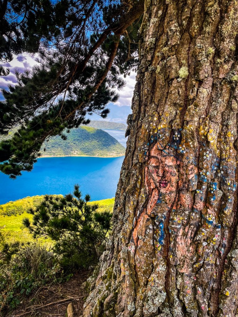 Ich aß mein zweites Brot und genoss den Moment der Stille. An einem der Bäume fand ich eine wunderschöne Malerei, es war Pachamama, die Mutter Natur. Für die Indigenas ist die Cuicocha ein heiliger Kraftort.
